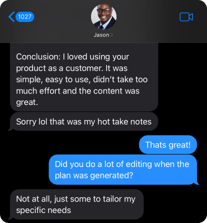 Once your AI plan is generated you can easily edit the plan with our "Talk To Plan" feature. You can input what you want changed and AI will take care of the rest